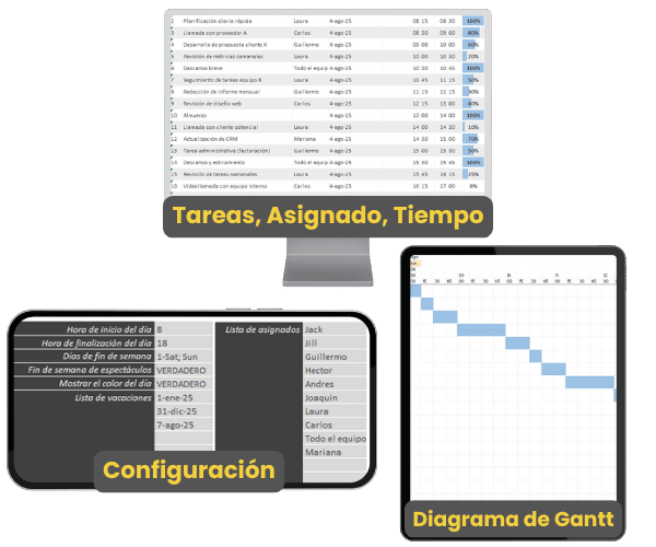 TODO LO QUE OBTENDRÁS AL ADQUIRIR LAS PLANTILLAS EN EXCEL DEL GANTT PLANNER POR HORAS Y MINUTOS