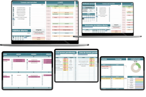 Adquiere La Plantilla de Planificador Semanal  y Empieza a Organizar Tu Vida Con Un Solo Clic, Obtienes También BONOS Exclusivos